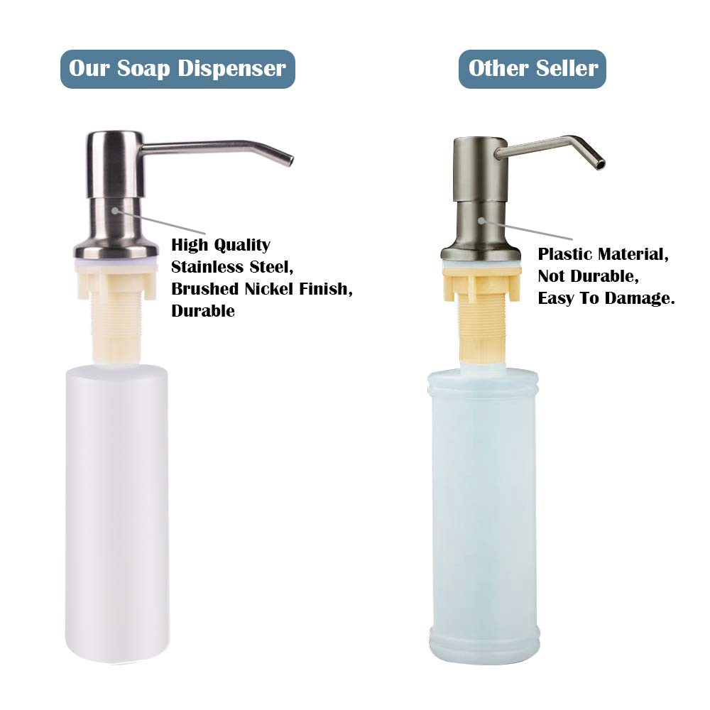 Gagalife built in sink soap dispenser or lotion dispenser for kitchen sink, brushed nickel abs pump head, with 13 ounce large pet soap bottle.